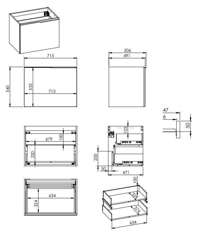 TECHNIKAI LEÍRÁS: összeszerelt termék szín: matt fehér belső fiók szifonkivágás nélkül, így helytakarékos szifon beszerelése szükséges fiók a fiókban kialakítás előlap és korpusz16 mmes laminált forgácslapból dekorüveggel borított előlap teljes kihúzható, softclose fiókok fém oldallal színazonos alumínium fogantyú 2 állítható fém akasztó 240 kg összkapacitású