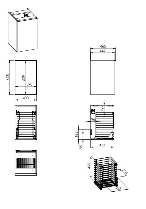Alsó szekrény, AREZZO design MONTEREY 40 cm-es oldalszekrény szennyeskosárral Matt Zöld színben