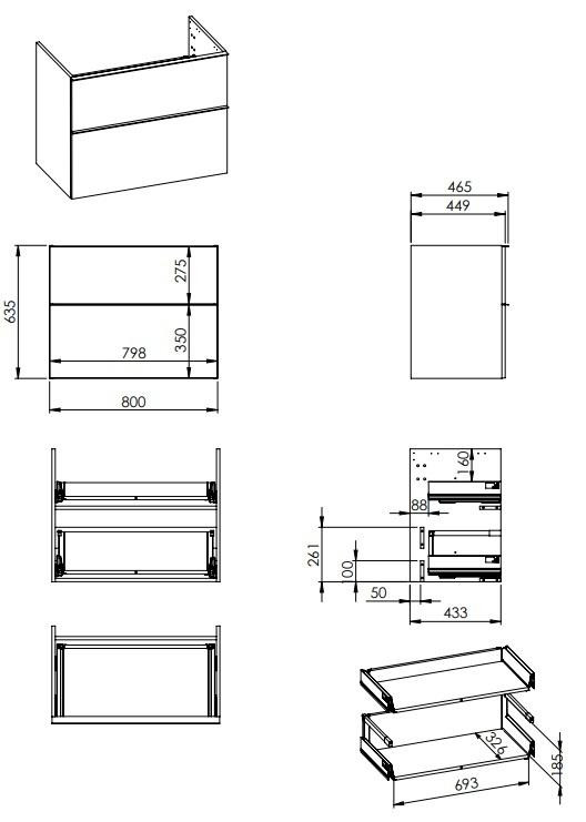 Alsó szekrény, AREZZO design MONTEREY 80 cm-es alsószekrény 2 fiókkal Lincoln dió színben, szifon