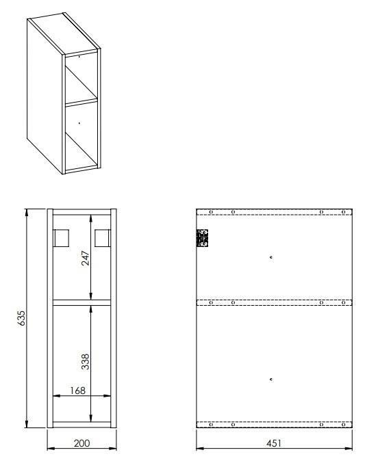 Alsó szekrény, AREZZO design MONTEREY Duo 20 cm-es nyitott elem Mf. fehér színben