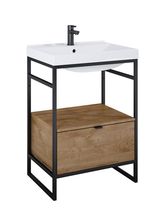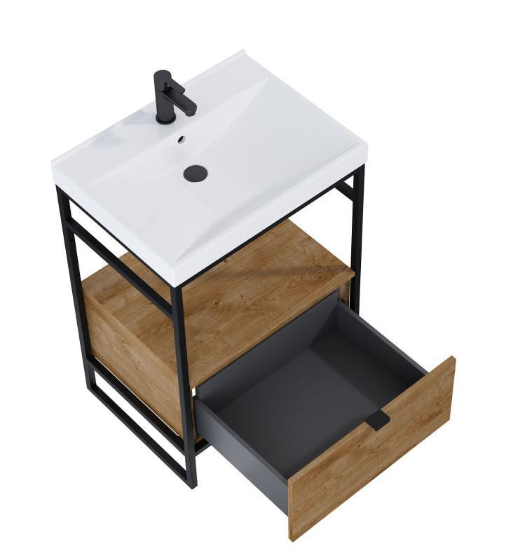 Alsó szekrény, AREZZO design NEBO alsószekrény 60 cm-es, 1 fiókkal, canela tölgy, matt fekete (2