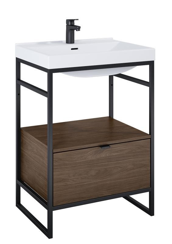 Alsó szekrény, AREZZO design NEBO alsószekrény 60 cm-es, 1 fiókkal, lincoln dió,  matt fekete (2