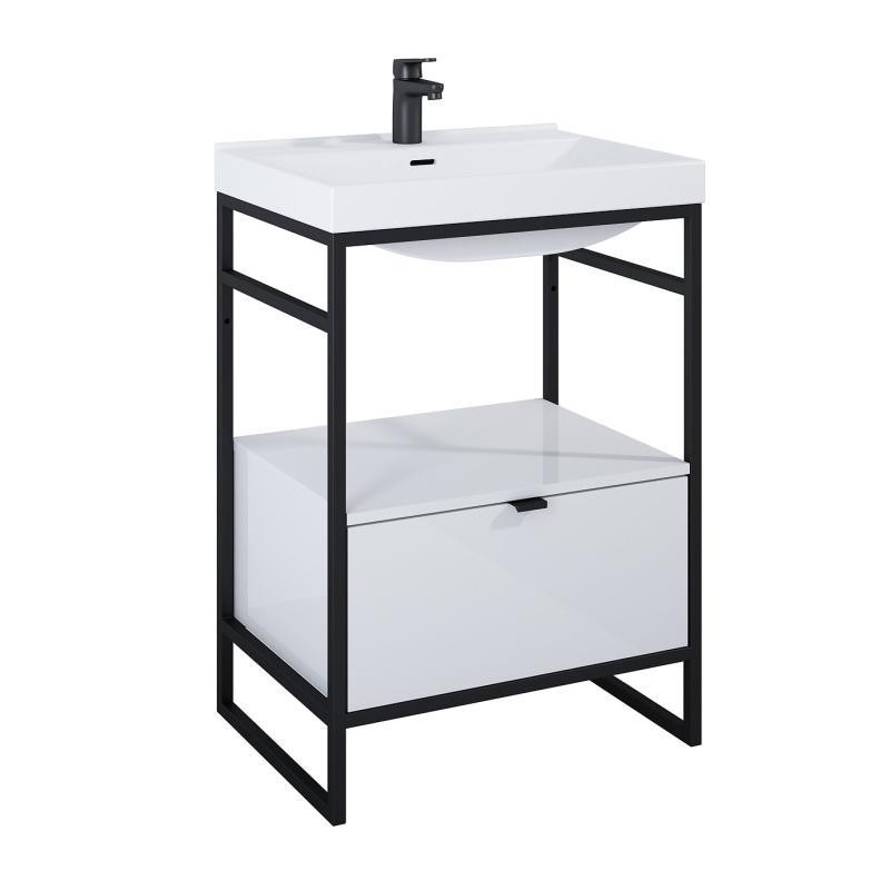 Alsó szekrény, AREZZO design NEBO alsószekrény 60 cm-es, 1 fiókkal, mf fehér, matt fekete (2 dobo