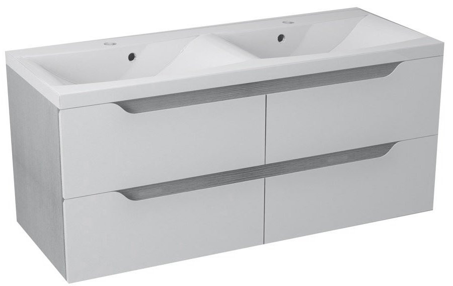 Wave fürdőszobaszekrény 4 fiókkal, pipererendezővel, fehér/ezüst tölgy színben.