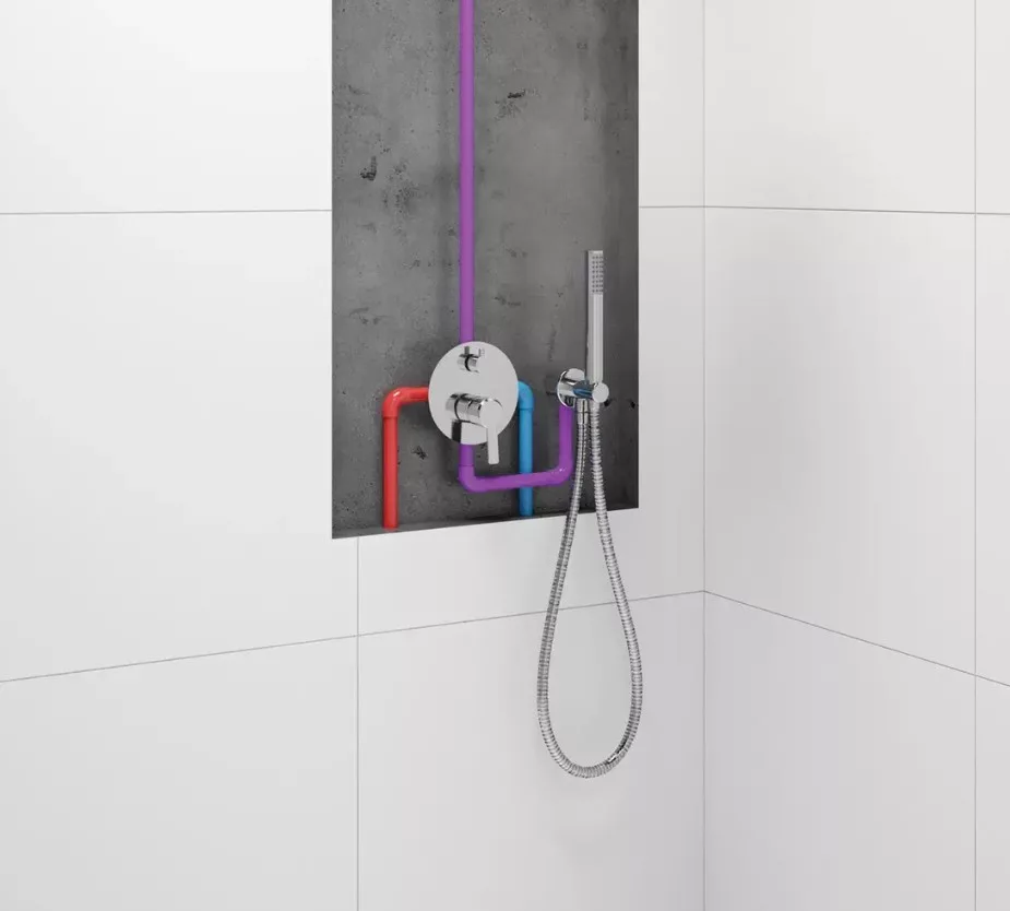 Falba süllyesztett csaptelep, Deante Arnika falsík alatti zuhanyszett, króm NAC_09QP