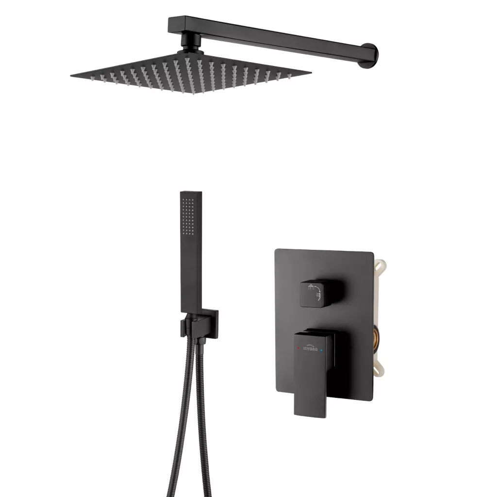 A készlet részét képezi egy 20 x 20 cm-es négyzet alakú, vékony esőztető, magas minőségű rozsdamentes acélból készült, és anti-calc rendszerrel van felszerelve, amely megkönnyíti a tisztántartását.