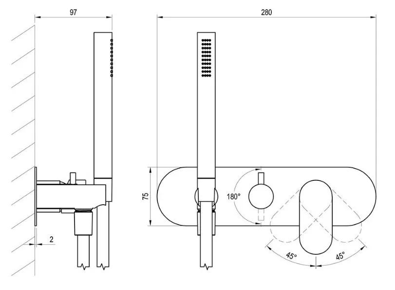 alkalmas: túlfolyós töltésű kádakhoz, átváltással a kézi zuhanyra illetve zuhanykabinokhoz, amelyek fix fejzuhannyal rendelkeznek, kézi zuhanyra való átkapcsolással
