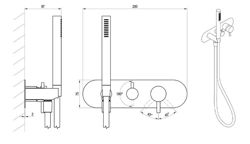 alkalmas: túlfolyós töltésű kádakhoz, átváltással a kézi zuhanyra illetve zuhanykabinokhoz, amelyek fix fejzuhannyal rendelkeznek, kézi zuhanyra való átkapcsolással