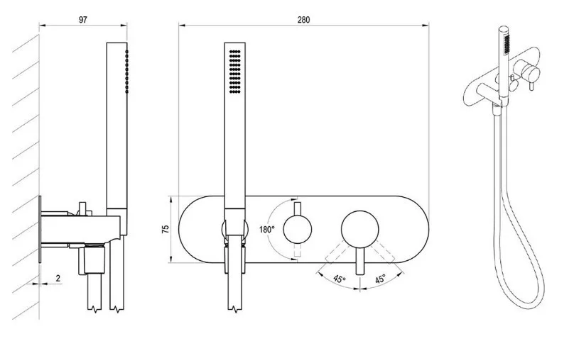 alkalmas: túlfolyós töltésű kádakhoz, átváltással a kézi zuhanyra illetve zuhanykabinokhoz, amelyek fix fejzuhannyal rendelkeznek, kézi zuhanyra való átkapcsolással