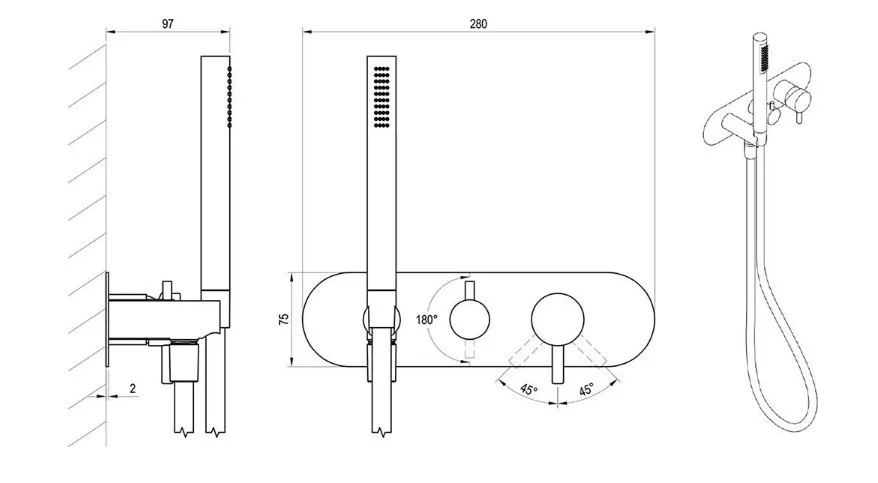 alkalmas: túlfolyós töltésű kádakhoz, átváltással a kézi zuhanyra illetve zuhanykabinokhoz, amelyek fix fejzuhannyal rendelkeznek, kézi zuhanyra való átkapcsolással