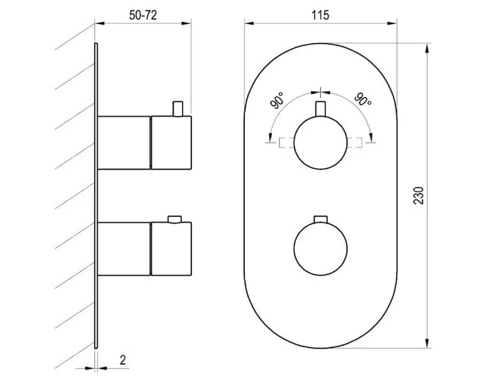Kivitel: 2-utas, kapcsolóval, test nélkül - a R-box Termo RB 07C.50-hez szükséges