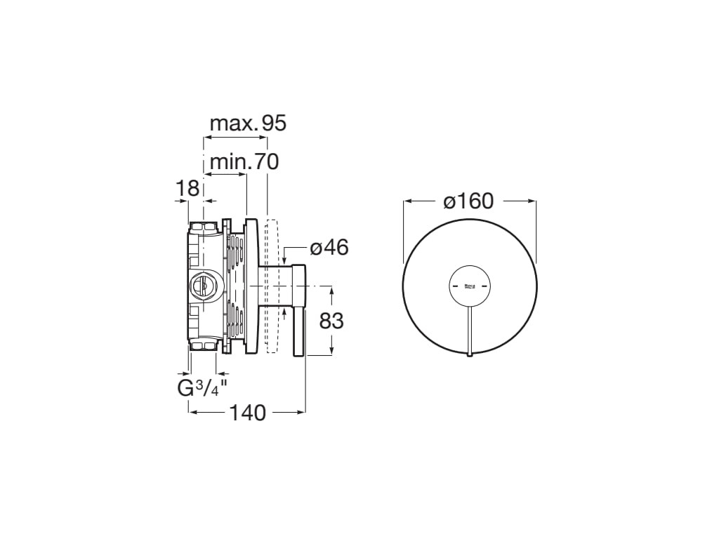 Falba süllyesztett csaptelep, Roca Ona A5A2B9ENB0 falsíkon belüli kád/zuhany csaptelep, 1 funkció