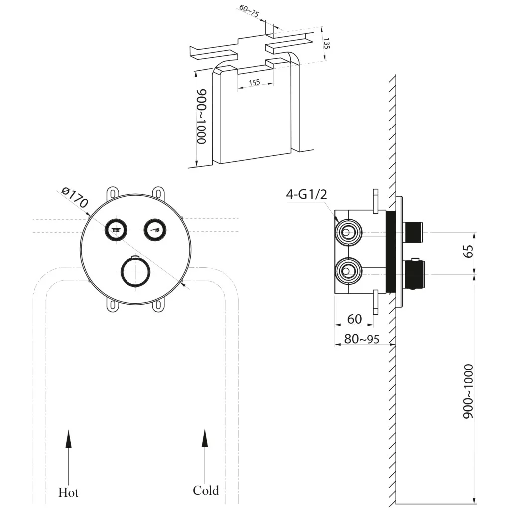 Falba süllyesztett csaptelep, Sapho Smartselect termosztatikus, 2 irányú, matt arany RP032GB