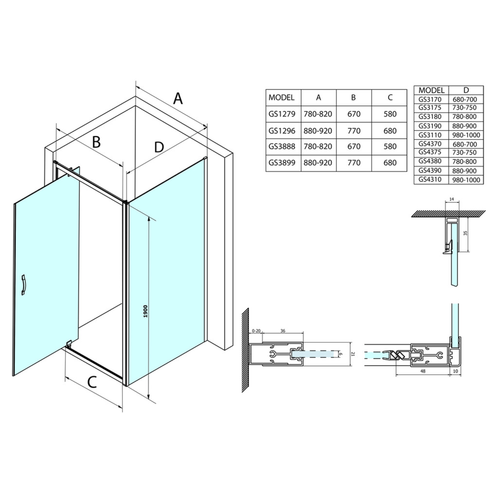 Fix fal, Sapho Gelco SIGMA SIMPLY oldalfal, 75 cm, brick üveg GS4375