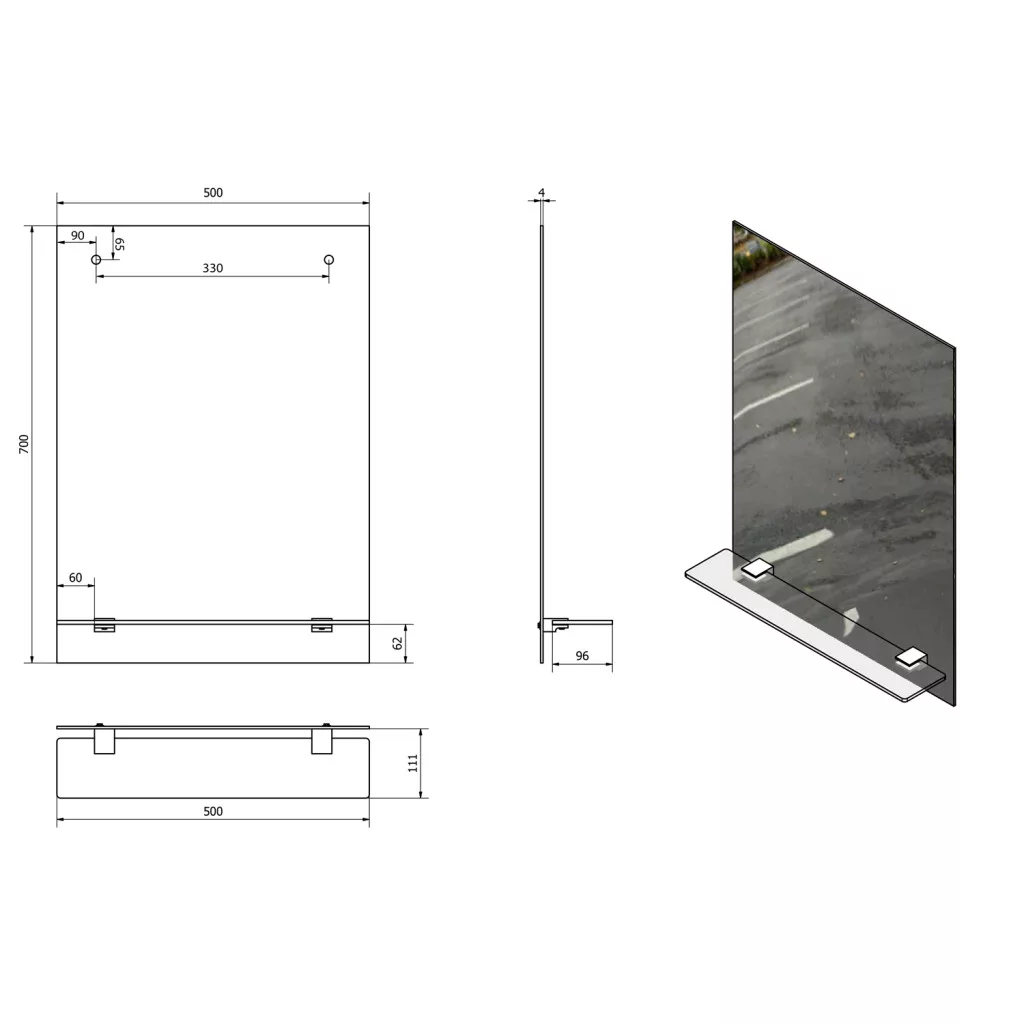Fürdőszoba tükör, Aqualine APOLLO furattal, 22429