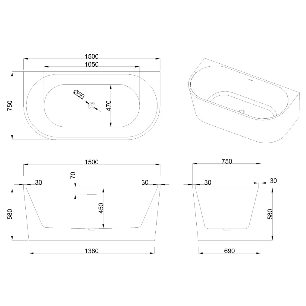 Kád, Invena Astri kád 150x75 cm AN-03-15U-F