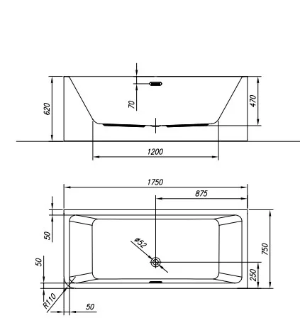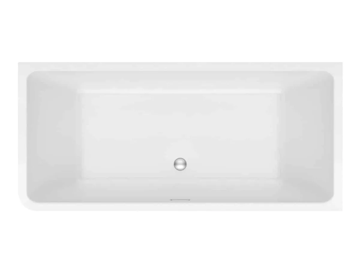 Egy falhoz állítható, és sarokba tehető egybeöntött előlapos megoldás, a szabadon álló kádak érzetével.