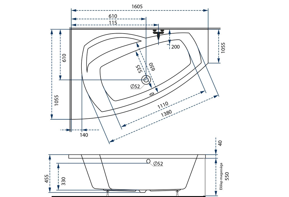 Kád, M-acryl CLAUDIA KÁD 160x105 BAL + LÁB
