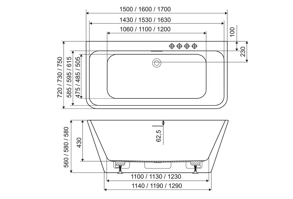 Kád, M-Acryl Iris W falhoz illeszthető kád 170x75 cm