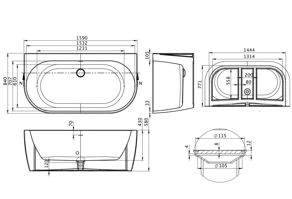 Kád, M-Acryl New Velvet kád 160x85 cm, fekete/fehér