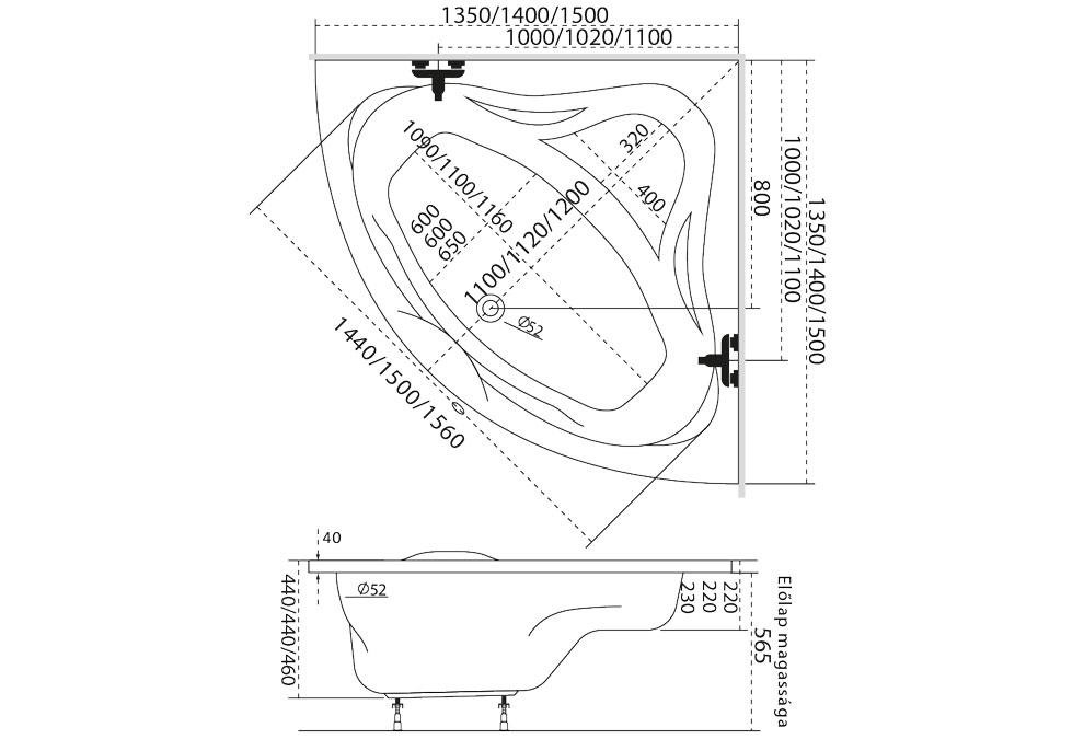 Előlapot, le-és túlfolyót és az oldallapot az ár nem tartalmazza, külön rendelhető!