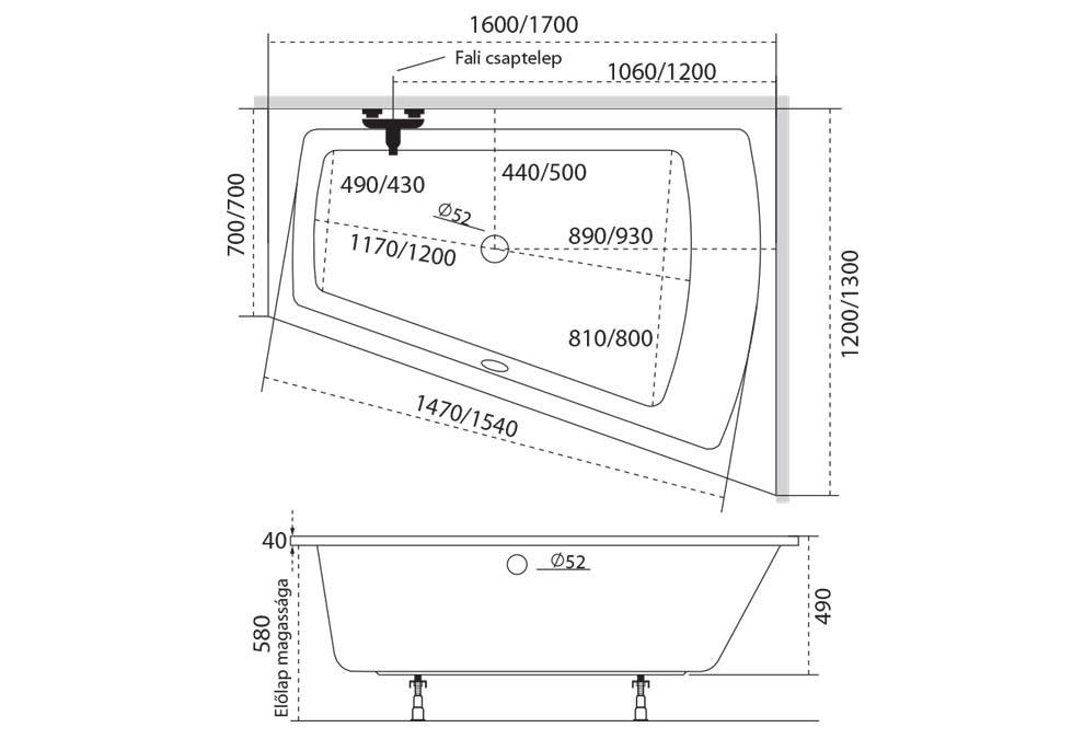 Előlapot, le-és túlfolyót és az oldallapot az ár nem tartalmazza, külön rendelhető!