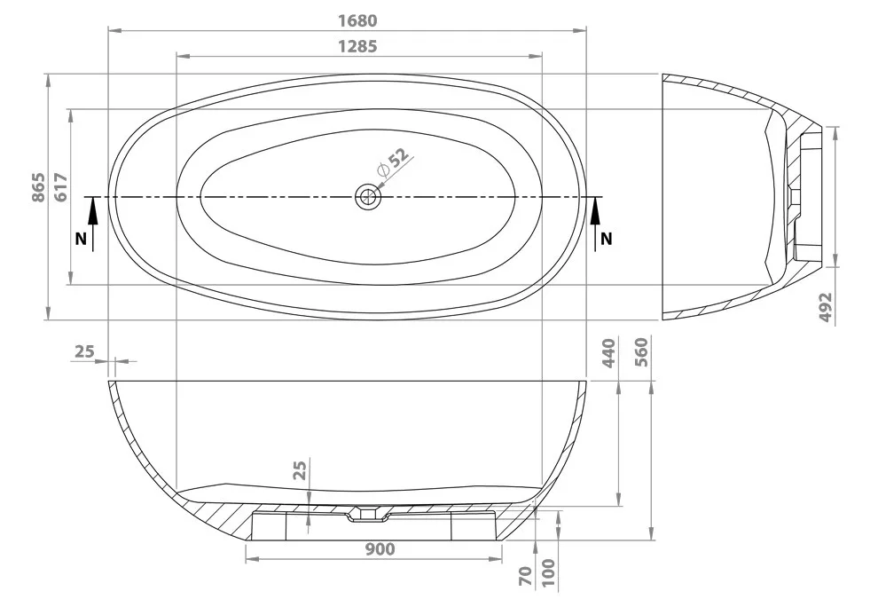 Kád, M-Acryl Vanilla szabadonálló kád 168x86 cm, fehér