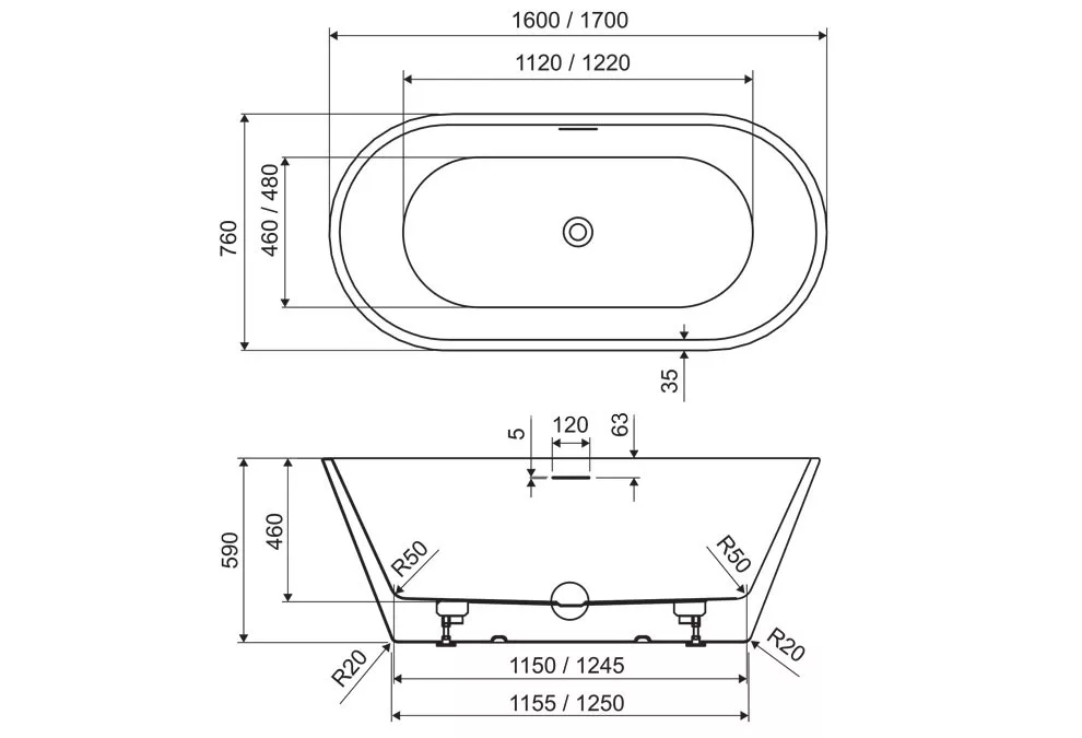 Kád, M-Acryl Victory szabadonálló kád, fehér előlappal 170x76 cm