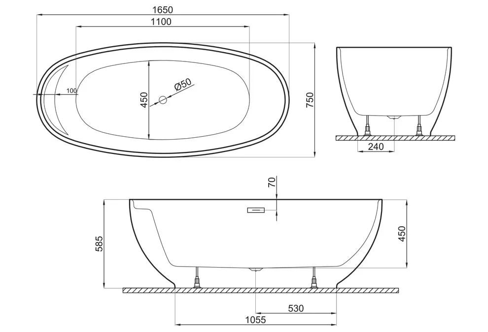 Kád, M-Acryl Zen szabadon álló kád 165x75 cm matt fekete/fehér