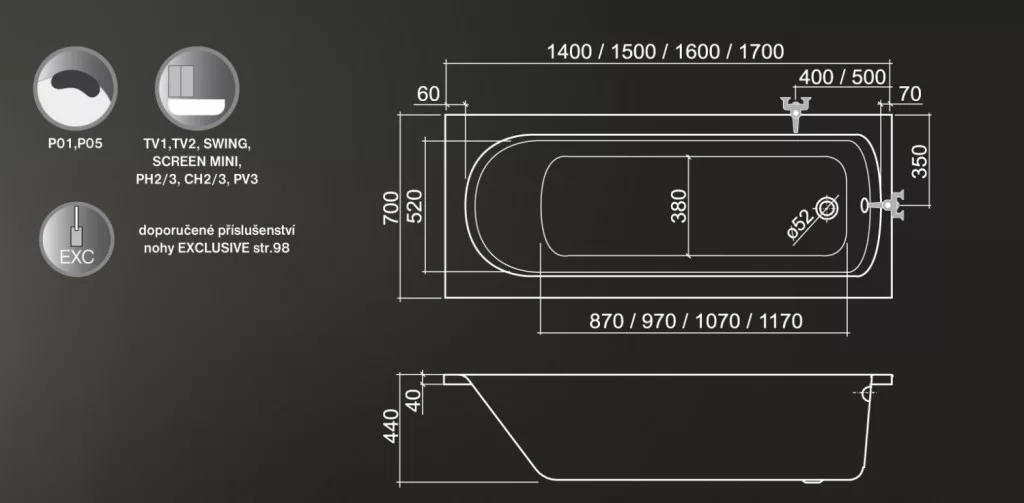 Roltechnik Vanessa Neo 150x70 egyenes kád