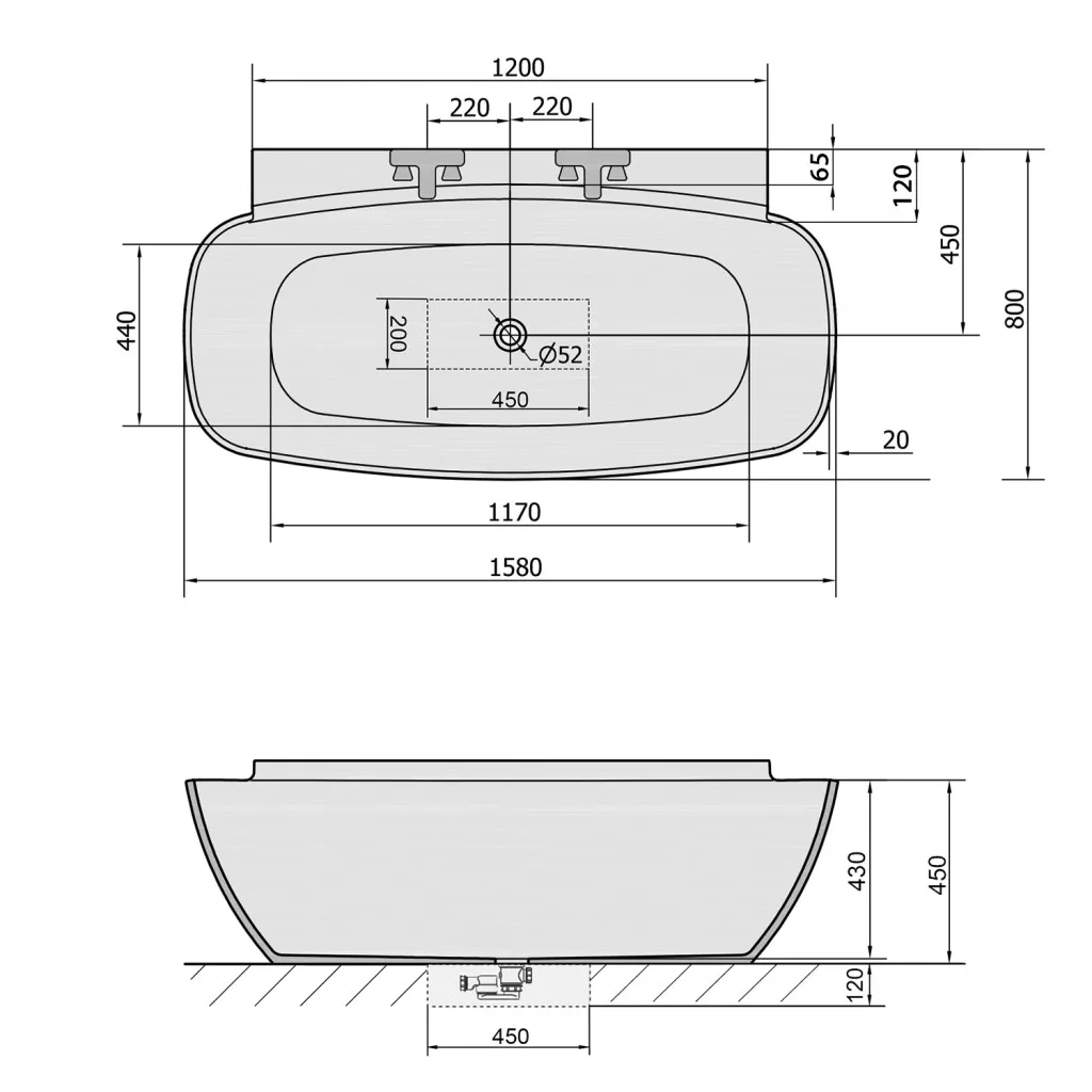 A kád telepítésekor a szifont a padlóba kell süllyeszteni.
