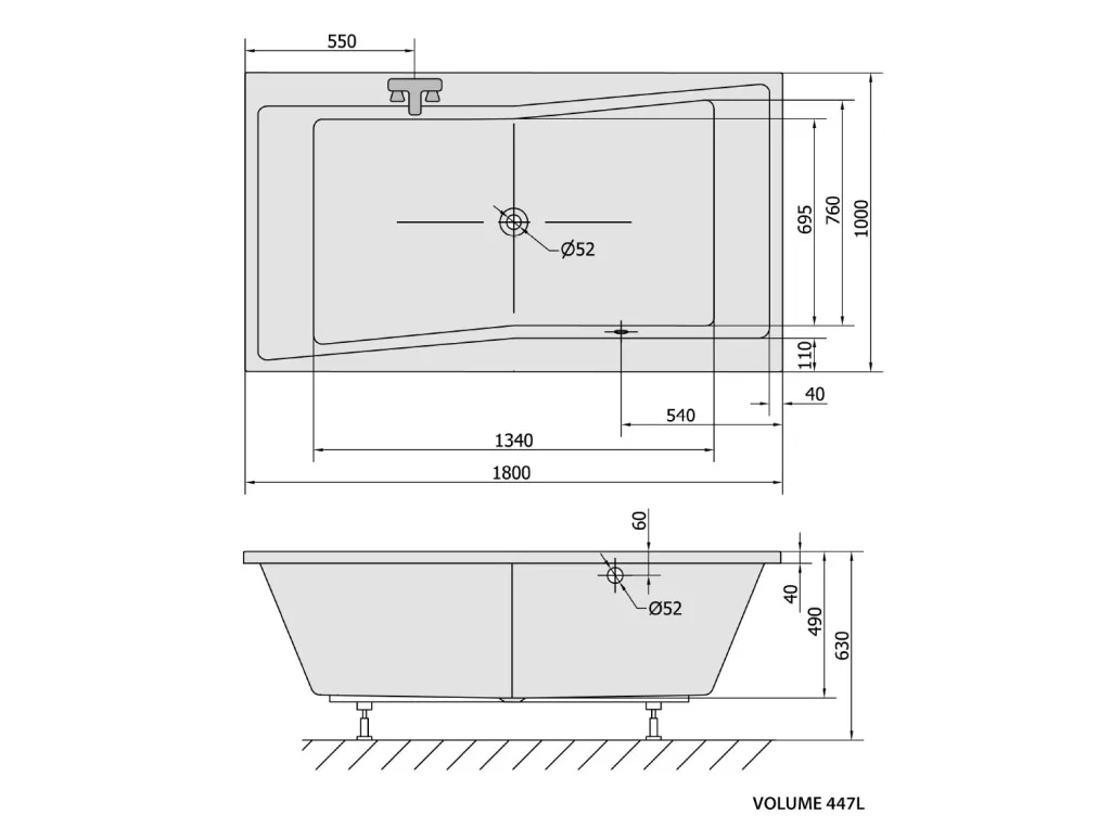 Kád, Sapho POLYSAN QUEST 78511.21 egyenes kád, 180x100x49cm, matt fekete
