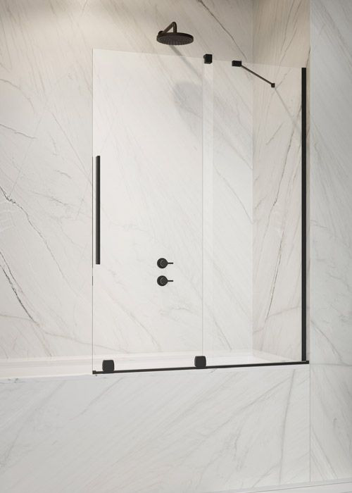 Fekete kádparaván görgős ajtóval