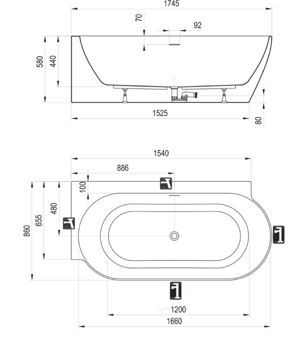 A tartóláb és az integrált le- és lefolyó a termék tartozéka.