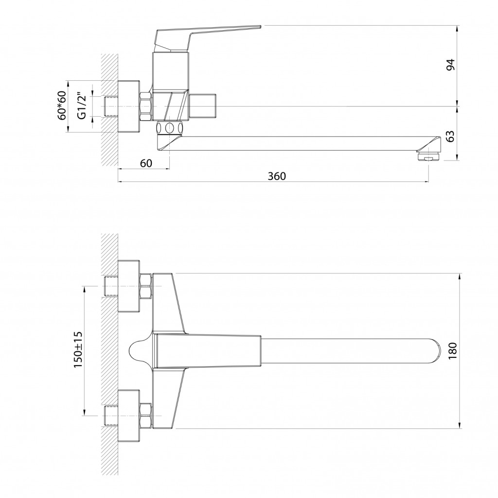 Kádtöltő csaptelep, Aqualine Ritmo fali kádtöltő csaptelep kifolyócsővel RT015