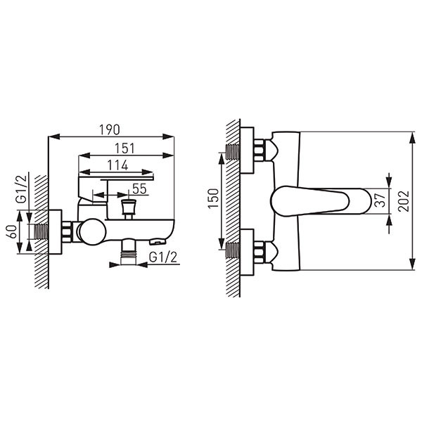 Kádtöltő csaptelep, Ferro Algeo Black fali kádcsaptelep BAG1BL zuhanyszett nélkül, fekete