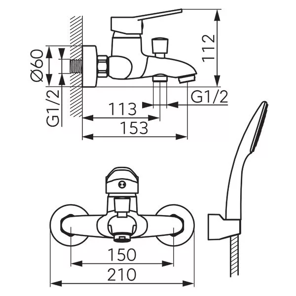 Kádtöltő csaptelep, Ferro Isso kádcsaptelep zuhanyszettel+tartó BIS11