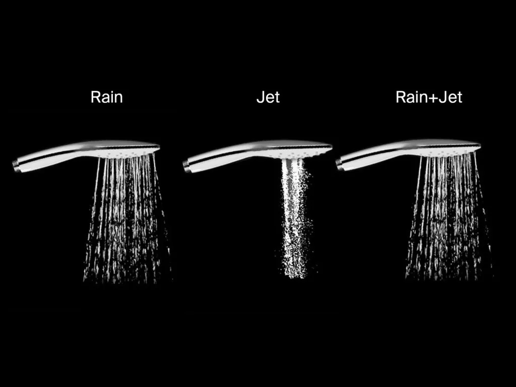 kézi zuhany kivitel: 3 vízátfolyási funkció – Rain, Jet, Rain + Jet