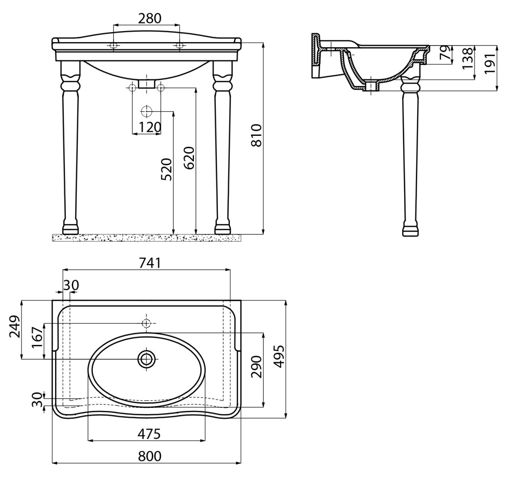 Mosdó, ANTIK kerámiamosdó 80x50 cm : AN080 Sapho