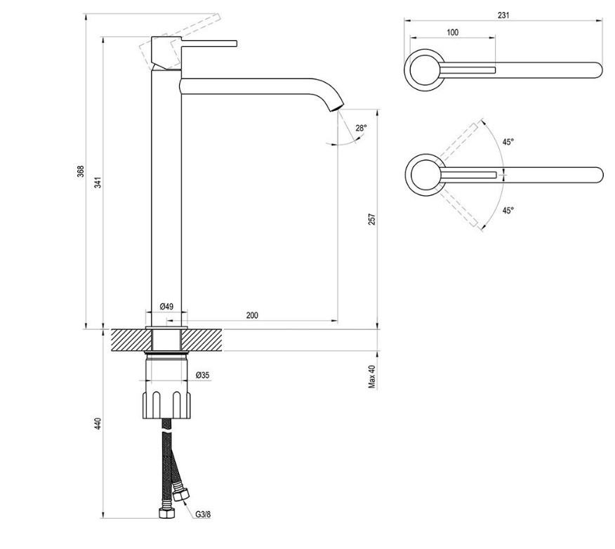 Mosdó csaptelep, Ravak Espirit ES 015.60RGB Álló mosdó csaptelep 340 mm, leeresztő nélkül X070348