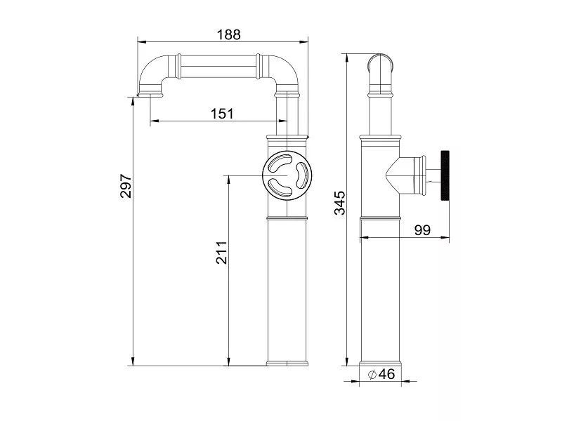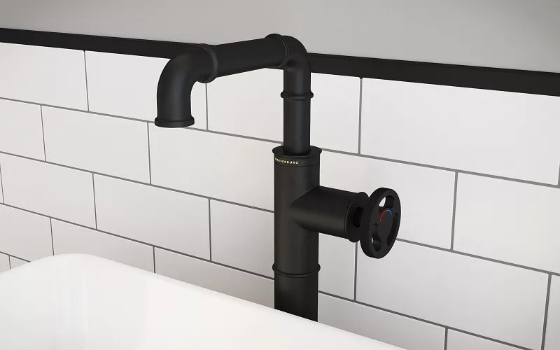 Mosdó csaptelep, Wasserburg Industry kétkaros magasított mosdó csaptelep, fekete 25.050.2B