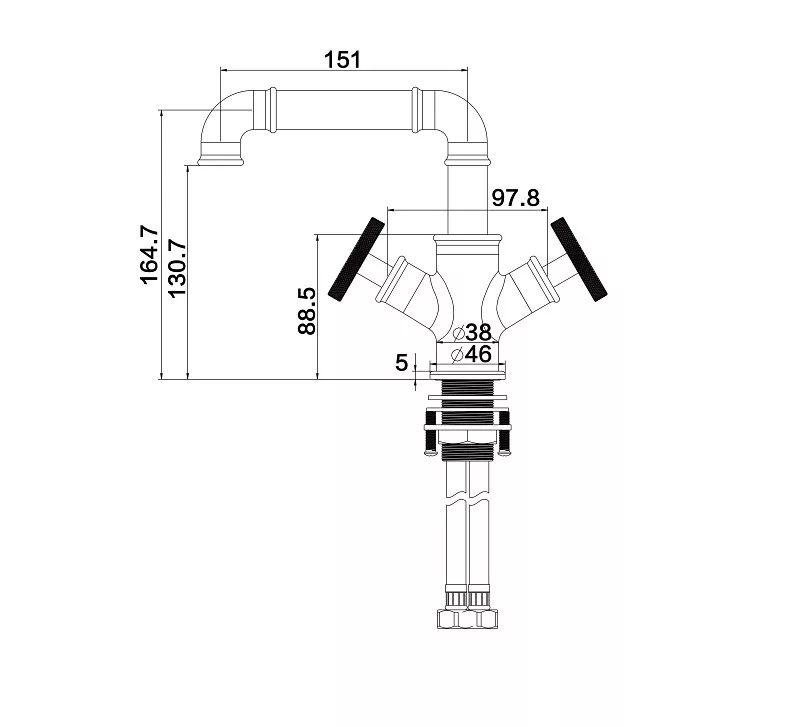 Mosdó csaptelep, Wasserburg Industry kétkaros mosdó csaptelep, fekete 25.051.1B