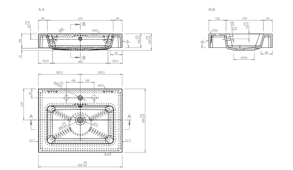 A mosdón beépített túlfolyó található, túlfolyós KLIK-KLAK lefolyóval szerelhető.