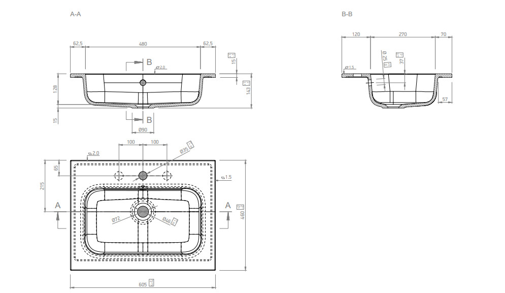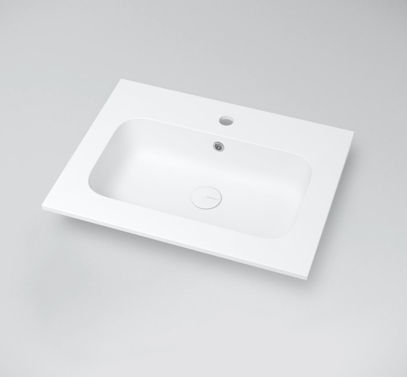 Vékony peremmagassága (1,5 cm) miatt kiválóan mutat pultba süllyesztve, valamint fürdőszobabútorra is tehető.
