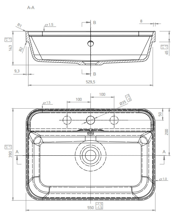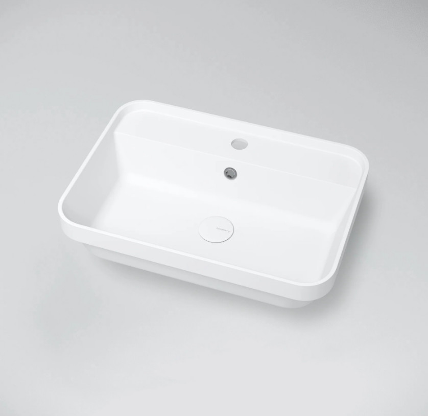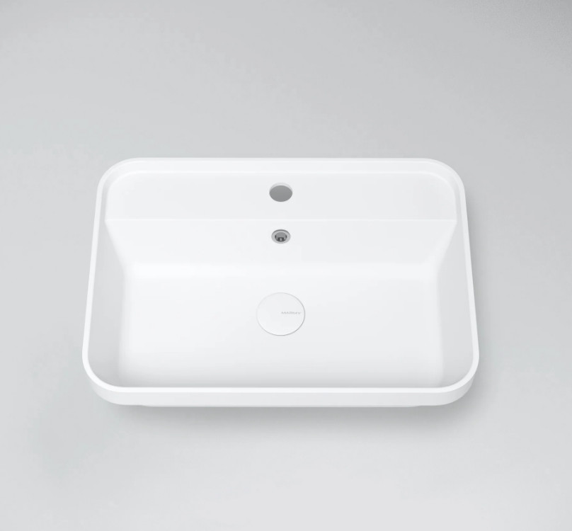Vékony peremmagassága (4,5 cm) miatt kiválóan mutat pultra téve, valamint fürdőszobabútorra is tehető.