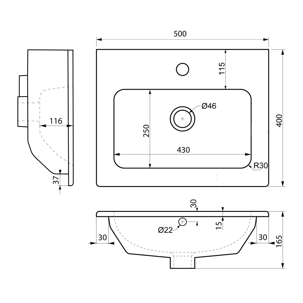 Mosdó, Sapho Practico kerámia mosdó 50x40 cm 44050