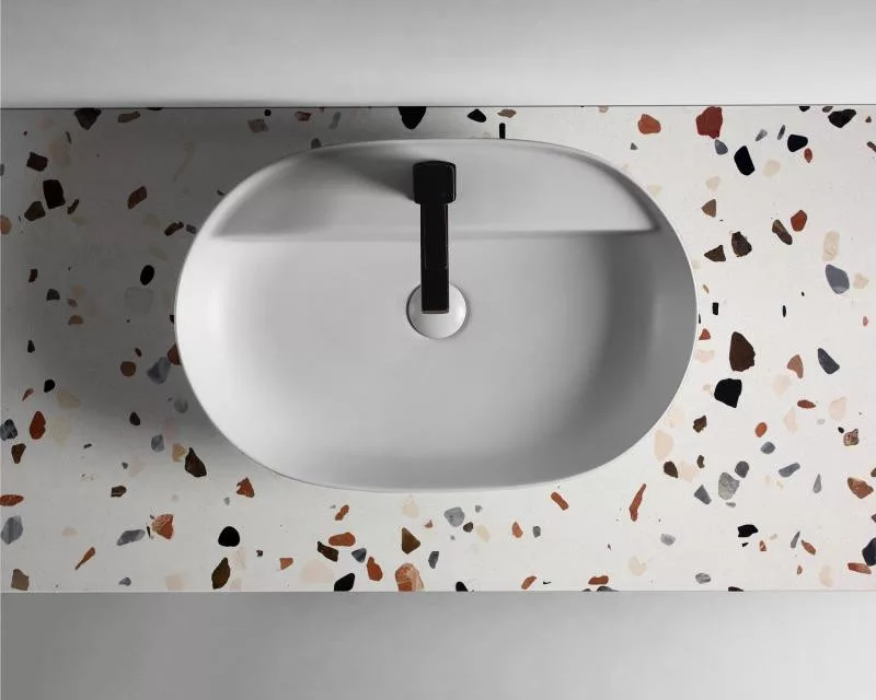 Mosdópult, AREZZO design TERRAZZO márvány mosdópult 120/49,4/2 mix matt