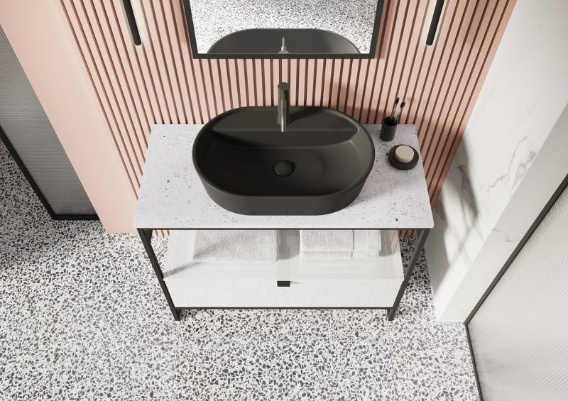 Mosdópult, AREZZO design TERRAZZO márvány mosdópult 60/46/2 fehér matt