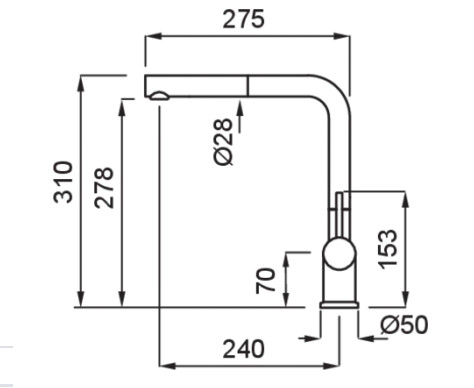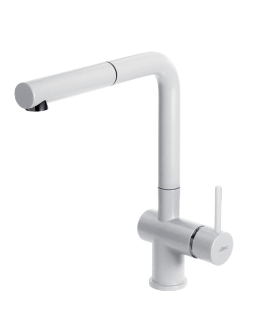 Egykaros "L" alakú modern, kerámiabetétes csaptelep, oldalsó szabályzóval, forgatható kifolyócsővel, kihúzható fejjel, normál beépítéssel, O35 mm-es furattal.