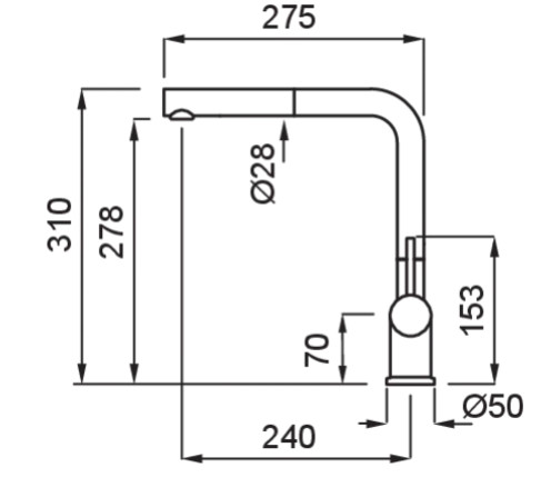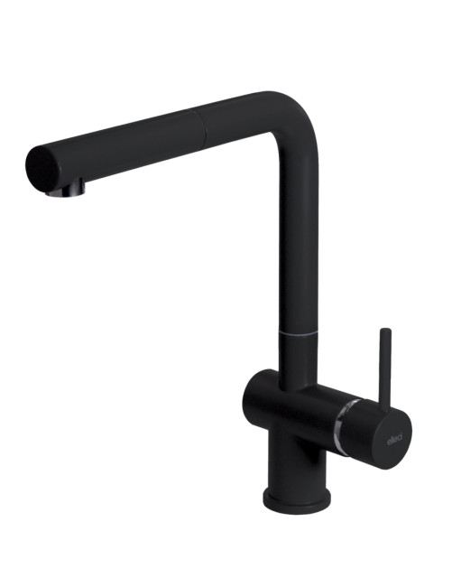 Egykaros "L" alakú modern, kerámiabetétes csaptelep, oldalsó szabályzóval, forgatható kifolyócsővel, kihúzható fejjel, normál beépítéssel, O35 mm-es furattal.
